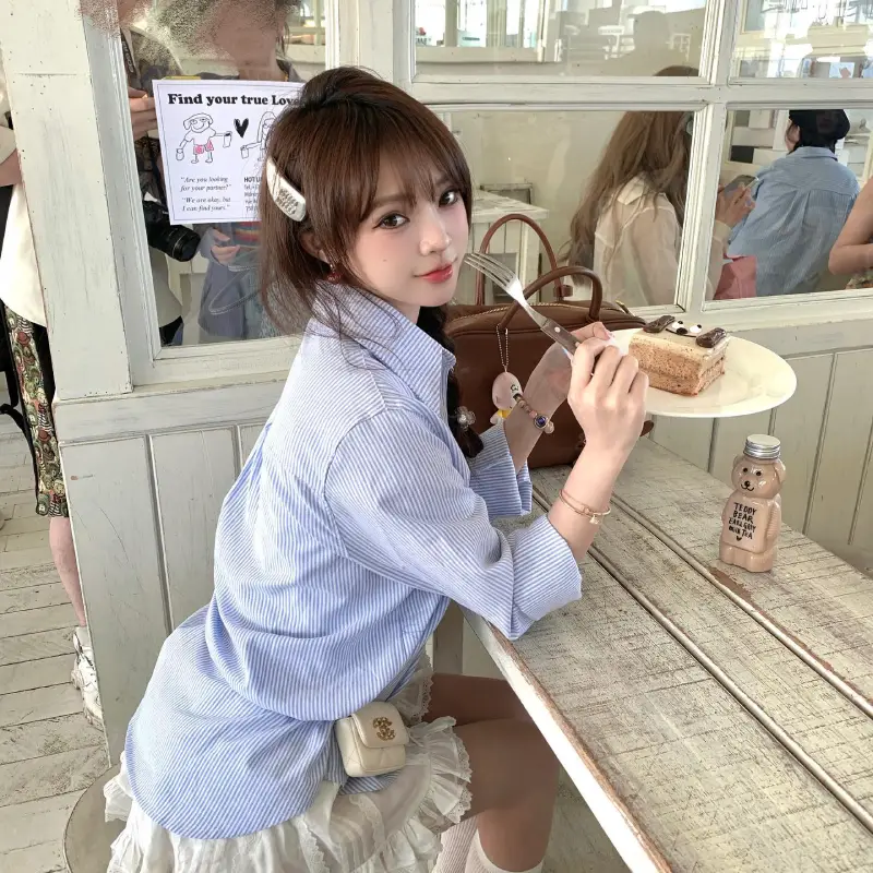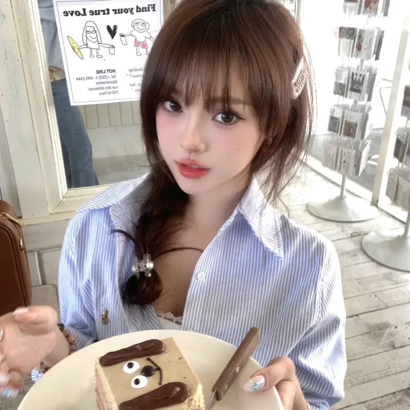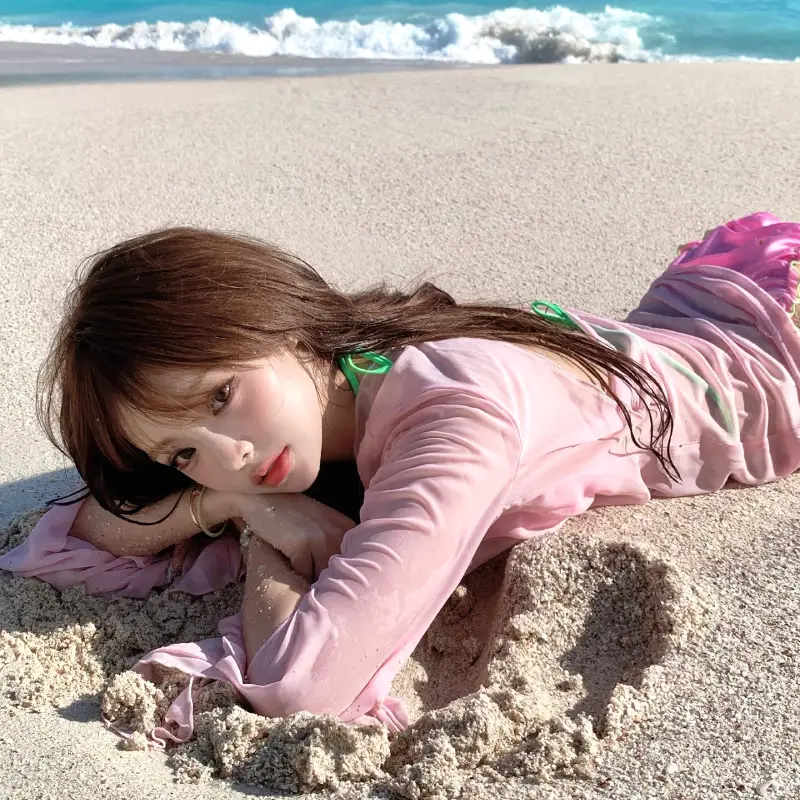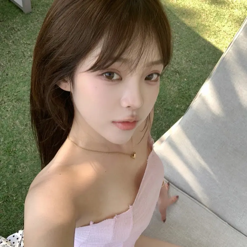 皮肤几乎没有瑕疵,脸型偏柔,长发红唇的时候,会有一点反差感。